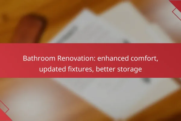 Bathroom upgrades can significantly improve comfort and functionality. Key areas to focus on include fixtures, tiles, and storage solutions. A typical bathroom remodel can cost anywhere from several thousand to over twenty thousand dollars, depending on the scope of work.